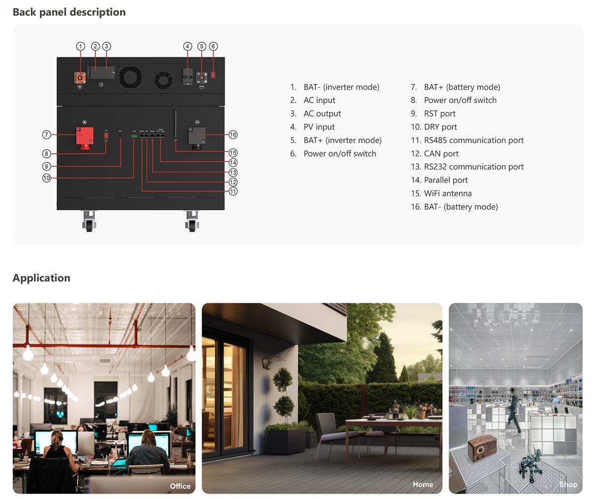 | Standard Warranty | Inverter: 2 years ; Lithium battery: 5 years | |||||