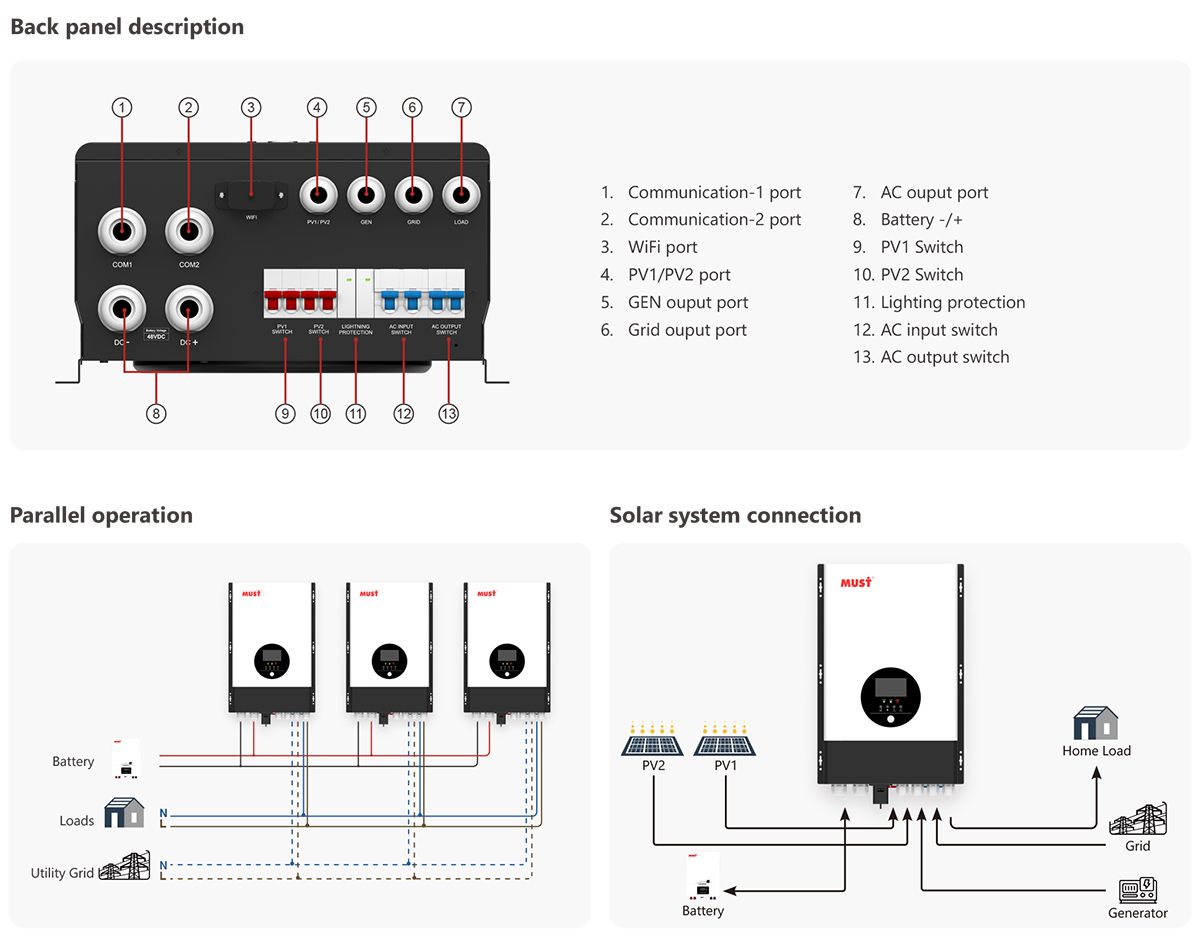 ■ Built-in MPPT solar charge controller 200A