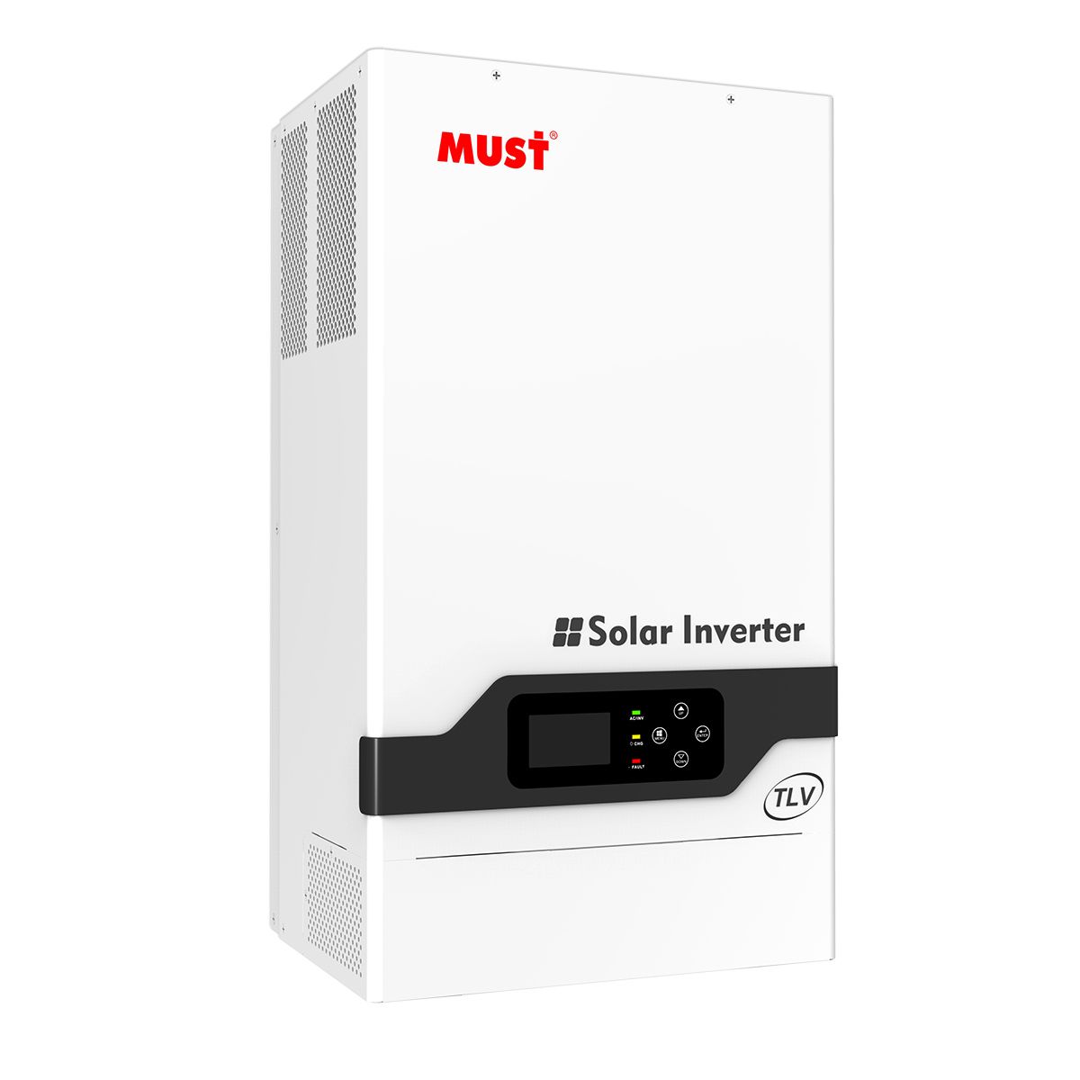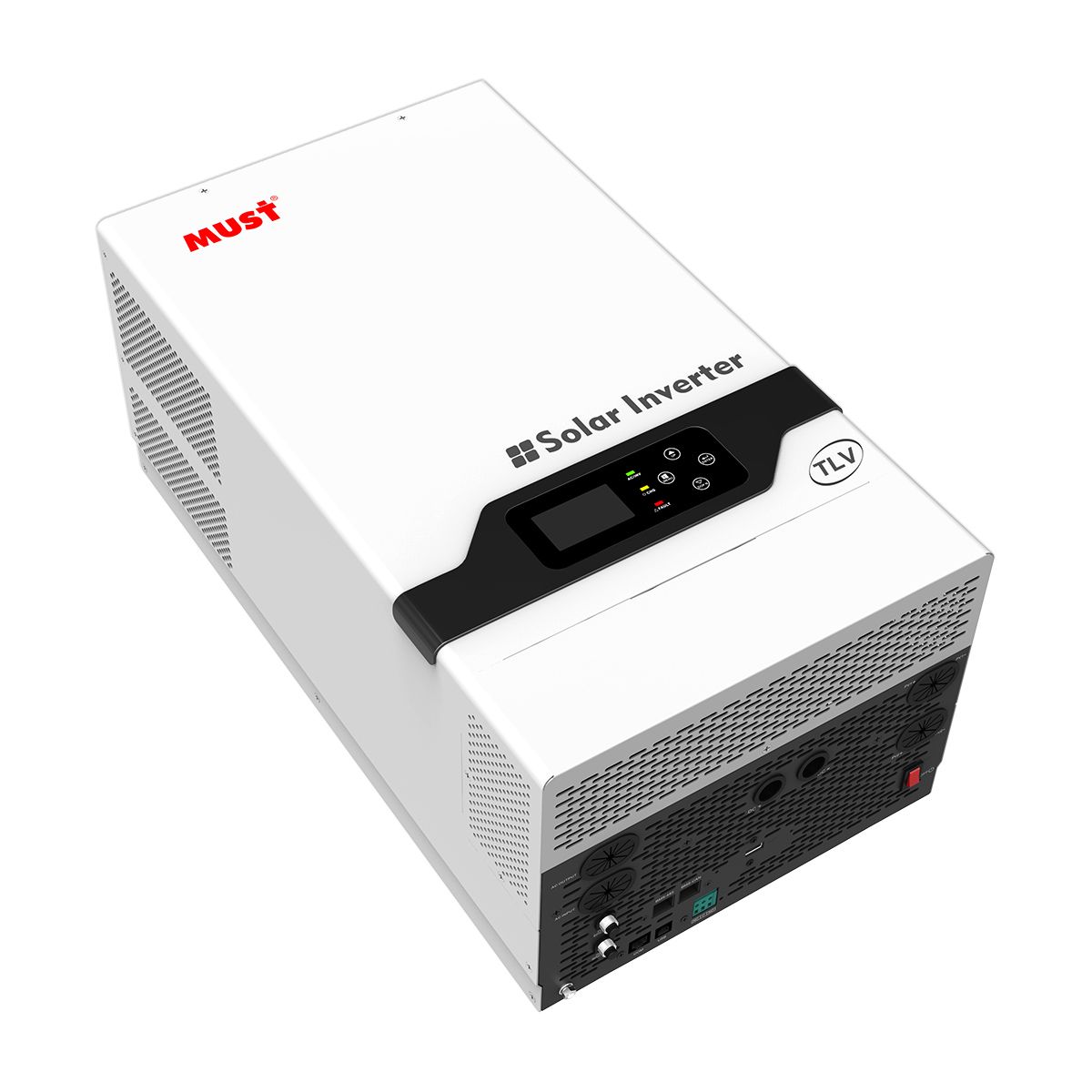 This split phase solar inverter PV1800 TLV series, capacity 6KW, DC 48V, it’s applicable to 110VAC/120VAC markets demands, which has AC output of single phase 110VAC/120V, split phase 220V/240V; In LCD display, you can set output voltage, frequency, charging voltage, charging current to design best use based on different loads applications; meanwhile, it has built-in two 80A MPPT solar charge controllers, you can take use of sunshine freely and save electricity bills.