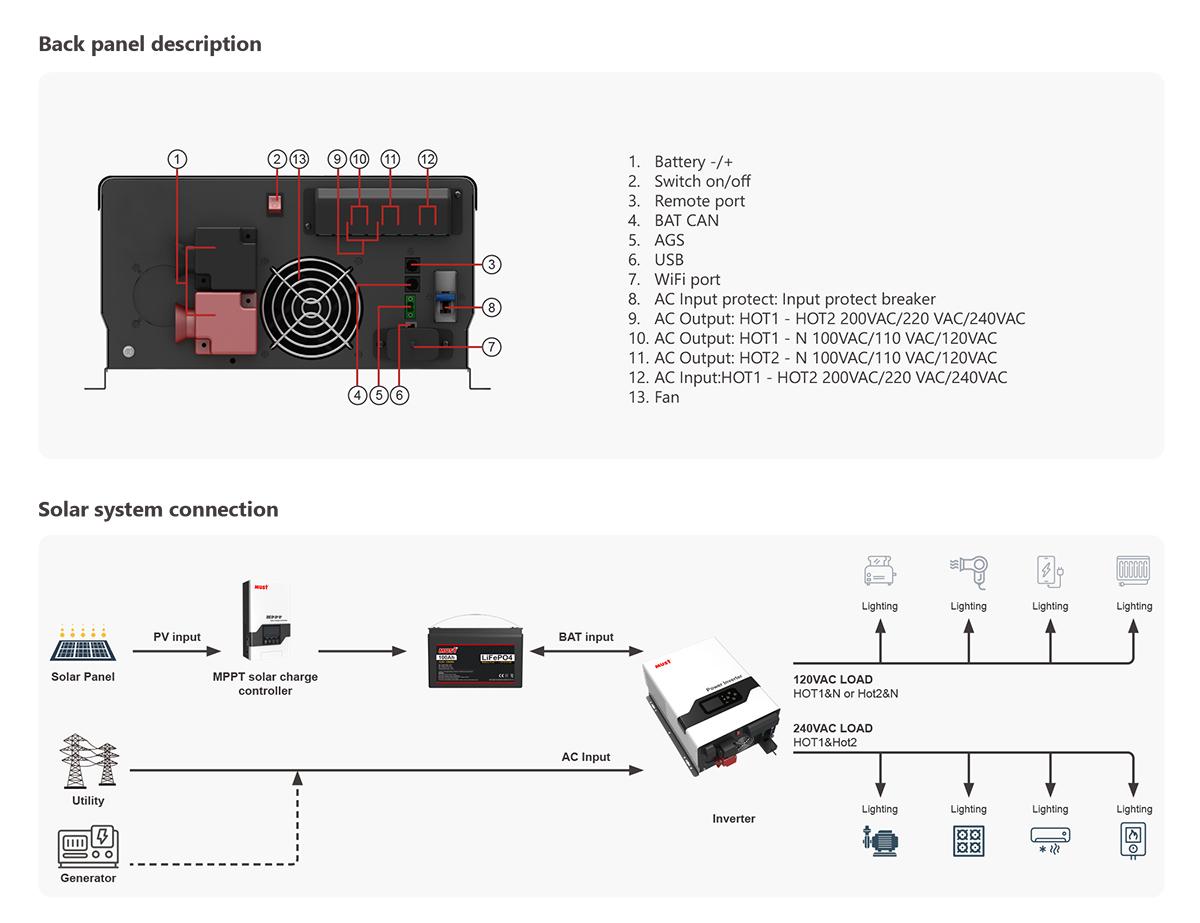 ■ Battery low voltage shutdown point can be set to 10/10.5/11/11.5/12V