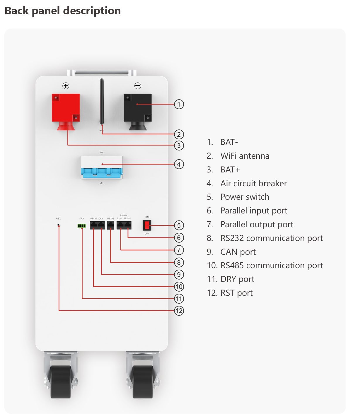Certification & Standards | CE-EMC(EN 61000-6-3: 2007+A1: 2011+AC: 2012 EN IEC 61000-6-1: 2019) UN38.3/ MSDS / IEC62619:2017 |