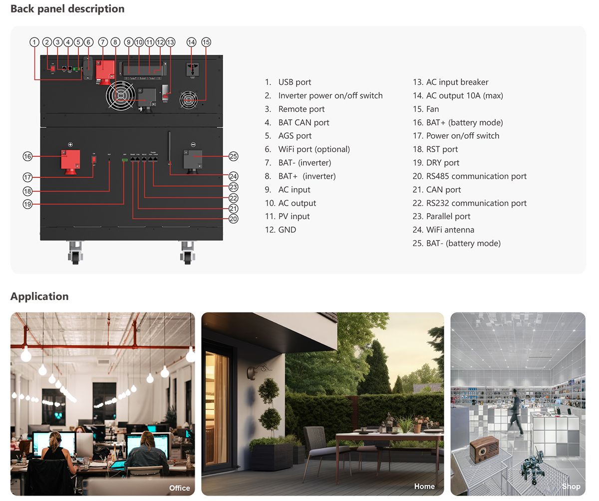 Standard Warranty | Inverter: 2 years ; Lithium battery: 5 years | |||||