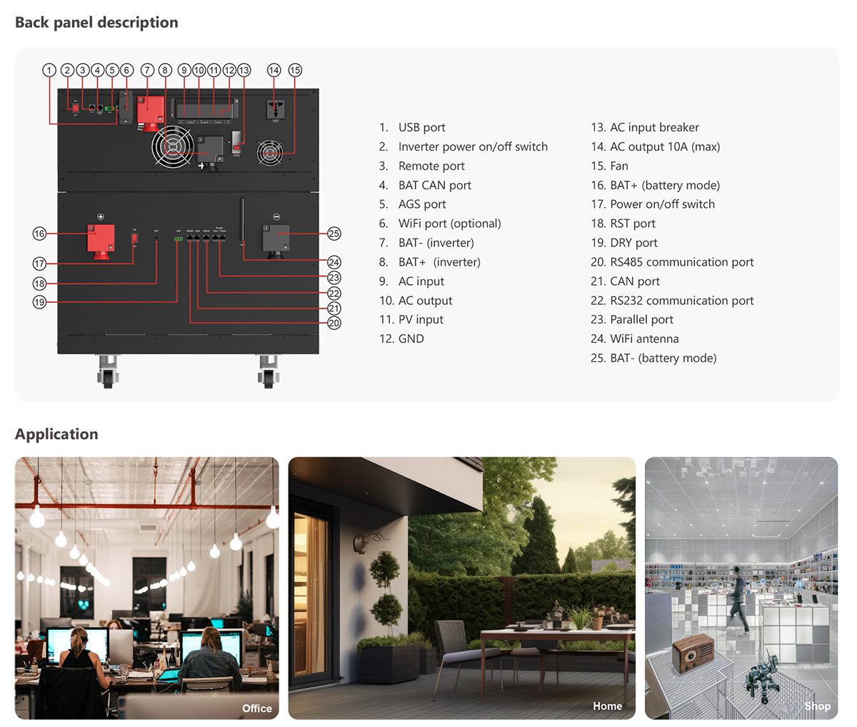 Standard Warranty | Inverter: 2 years ; Lithium battery: 5 years | |||||