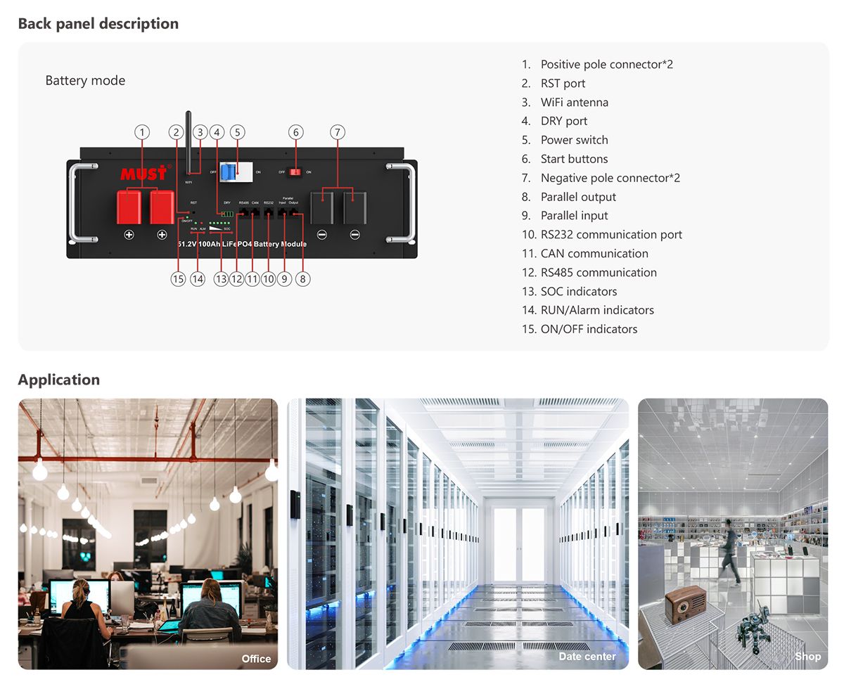 ■ Parallelable for up to 6 battery packs