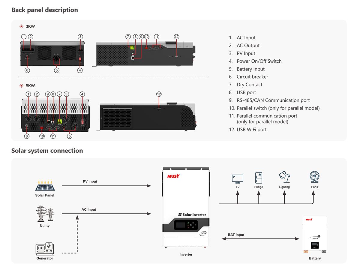 Rated Power | 3000VA / 3000W | 5200VA / 5200W | ||