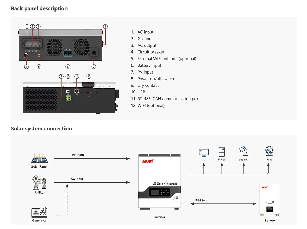 ■ Combining solar system, AC utility, and battery power source to supply continuous power