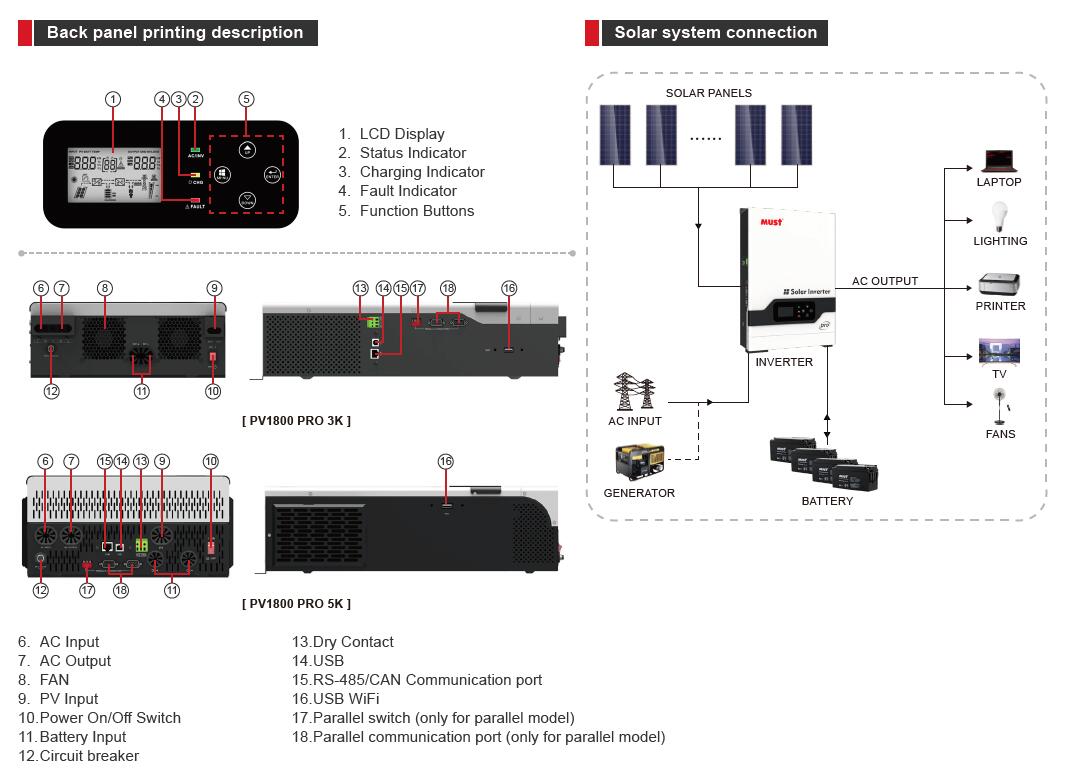 • Parallel operation with up to 3 units (Available for 4KW/5KW only)