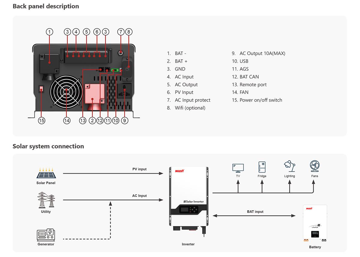 Low Battery Voltage Cut Off | 10V/ 10.5V/ 11V/ 11.5V/ 12V for 12VDC mode (*2 for 24VDC, *4 for 48VDC) | |||||||